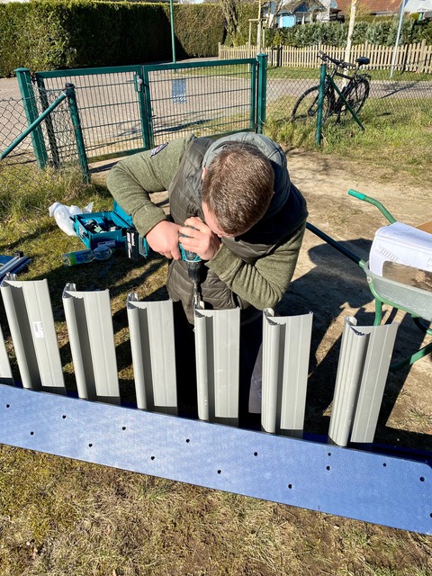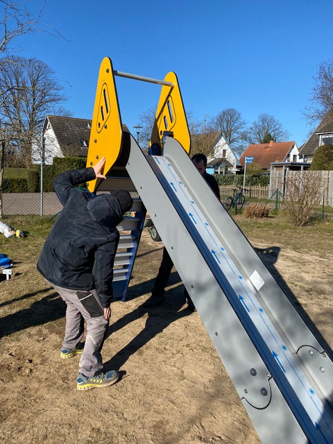 Das Tor wurde repariert und Sträucher wurden verschnitten. Viele Kinder fanden den Einsatz ihrer Eltern sehr cool und probierten die neuen Geräte gleich aus. In den Gesprächen kam immer wieder ein Wunsch zum Ausdruck: eine neue Rutsche für die Kinder wäre noch toll hier. Diese konnte wenig später tatsächlich geliefert werden. Montiert und aufgestellt wurde sie von den Vätern, die hier schon einmal aktiv waren.